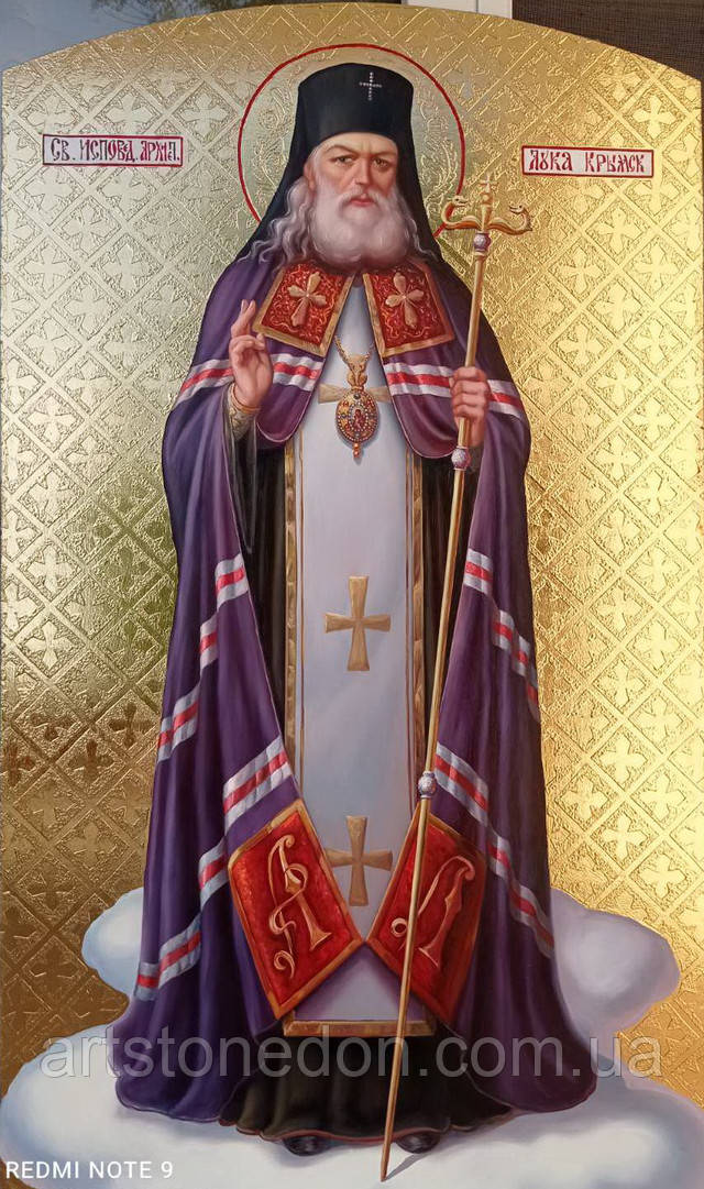 Ікони виконані вручну, на вологостійкому МДФ, з покриттям сусальним золотом.