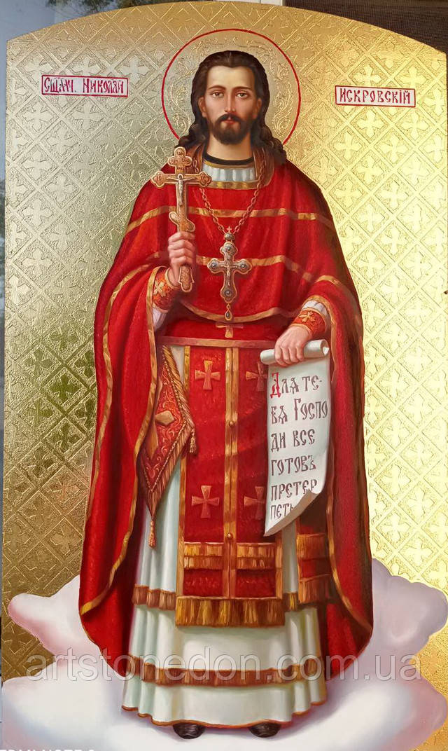 Ікони виконані вручну, на вологостійкому МДФ, з покриттям сусальним золотом.