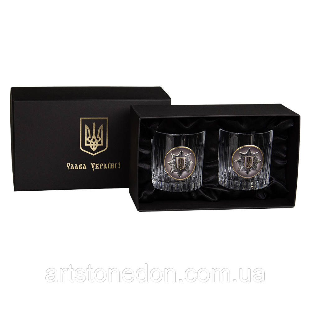 Кришталевий набір для віскі "Національна поліція" – 2 келихи 360 мл зі срібною емблемою, подарунок