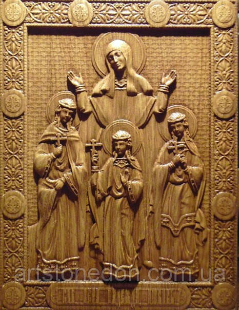 Православна різьблена ікона "Віра, Надія, Любов і їх мати Софія"