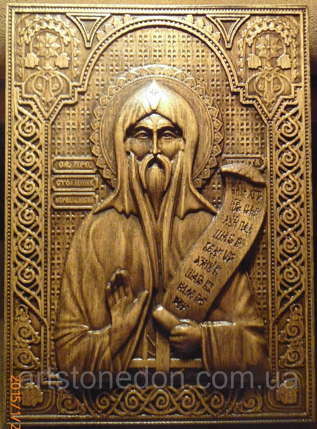 Різьблена ікона "Преподобний Микита Стовпник, Переяславський Чудотворець"